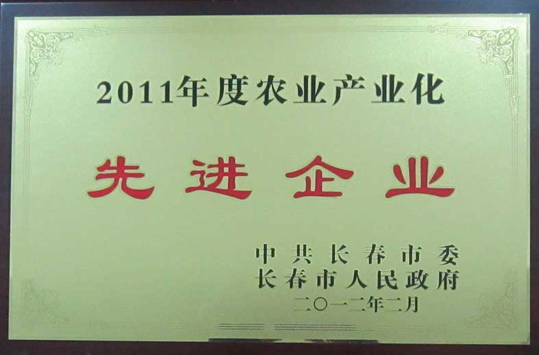 長春市委市政府2011年度農(nóng)業(yè)產(chǎn)業(yè)化先進企業(yè)