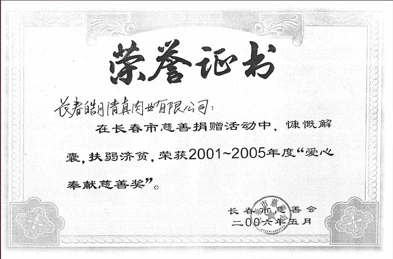 長春市慈善會2001-2005愛心奉獻(xiàn)慈善獎